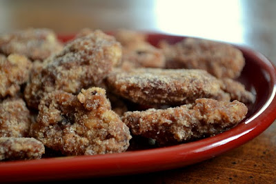 I love these pecans. I first made them when Scott and I were babysitting our favorite nephews. (The boys were in bed when I made them.) Don’t worry; I left some behind for my brother and sister-in-law to eat! I wouldn’t just use someone else’s stove without leaving a nice treat behind! I think this recipe should come with a warning label that reads, “These are addictive. Make these and then immediately share them with other people so you don’t eat them all yourself.” Consider yourself warned!